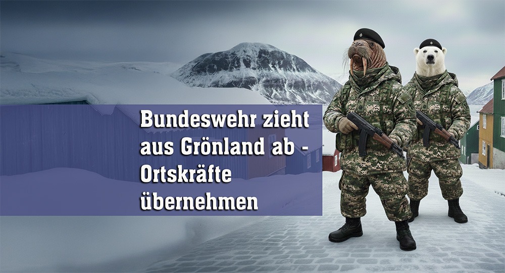 Berlin/Nuuk (dpoi) – Es ist ein Meilenstein deutscher Militärgeschichte: Die 15 Bundeswehrsoldaten, die vom 16.01.2026 bis 18.01.2026 an einer Erkundungsexkursion in Grönland teilgenommen haben, sollen das Ehrenkreuz der Bundeswehr für Tapferkeit erhalten. Gewürdigt wird ihr außergewöhnlicher Mut, drei Tage lang Wind, Eis und sich selbst ausgesetzt gewesen zu sein. Ihren Job übernehmen jetzt Ortskräfte der grönländischen Walross-Brigade.