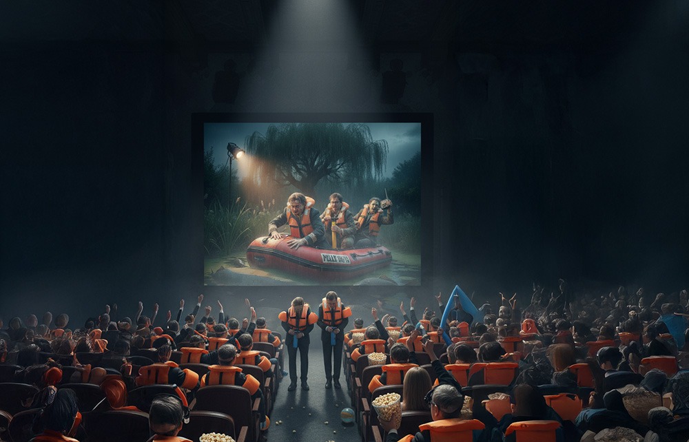 Schon Stunden vor der Vorstellung säumten Dutzende Zuschauer, ausgestattet mit Schwimmflügeln, Taucherbrillen und wasserdichten Popcorntüten, die Zugangswege zum Kino. Die Stimmung war – passend zum Thema – absolut unterkühlt, aber voller Vorfreude. Immer wieder skandierten Rufe wie „Mehr Luft! Mehr Luft!“ oder „Wo ist die Flickzeug-Box?!“ durch die feuchte Abendluft.
