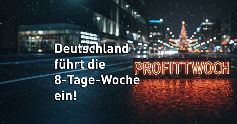 Deutschland hat es wieder einmal geschafft, die Welt zu überraschen. Während andere über die 4-Tage-Woche fabulieren, zimmern wir einfach einen Tag dran! Die 8-Tage-Woche mit dem Profittwoch ist nicht nur ein Modell, es ist eine Erklärung: „Wir haben euch lieb, liebe Wirtschaft! Und wir opfern dafür alles, sogar die Logik!“