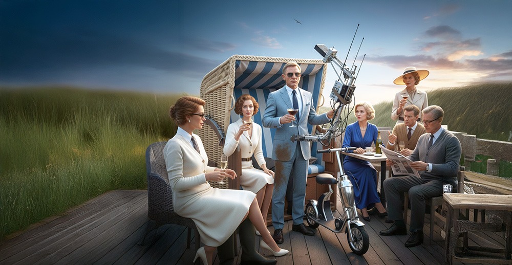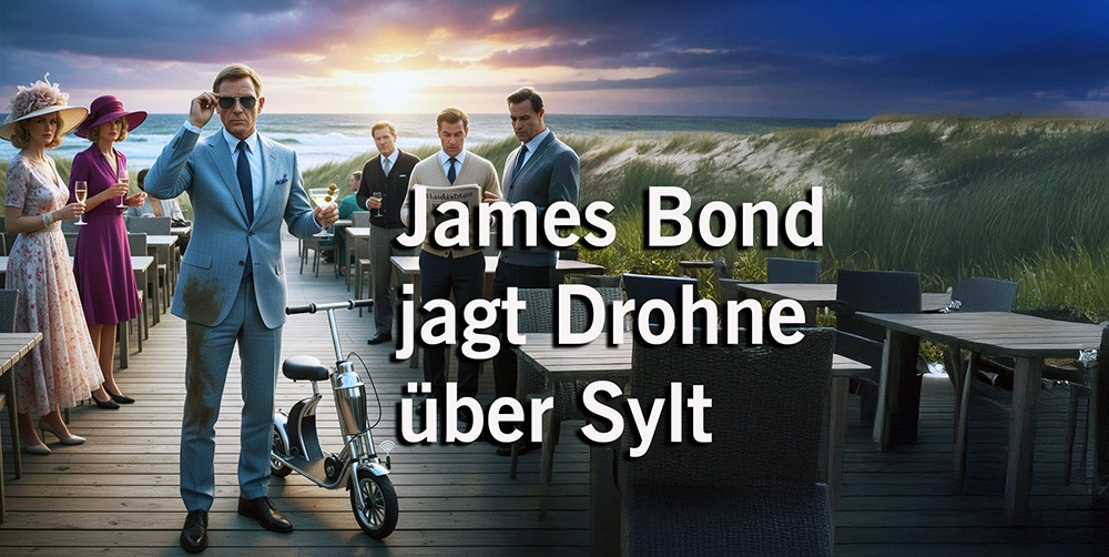 Westerland (dpoi) – Die feine Gesellschaft auf Sylt erlebte unlängst einen Schock, der tiefer saß als die jüngste Preiserhöhung beim Gosch-Fischbrötchen. Mitten über dem mondänen Rantumbecken tauchte ein unidentifiziertes Flugobjekt auf, ein flüsterleises, aber unbestreitbar russisches Aufklärungsmodell, genannt die „Wodka-Kamera-5000“. Doch die Rettung nahte in Gestalt eines Mannes, dessen Anzug knitterfrei und dessen Martini-Bestellung präzise war: James Bond, Codename 007.
