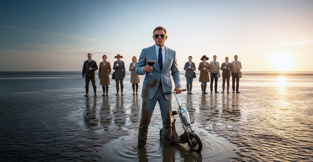 Die Sylter Atombombe (die Champagner-Explosion) mag zwar verpufft sein, aber der britische Geheimdienst hat gelernt: Für die nächste Mission auf der Insel wird der Aston Martin gegen ein E-Bike mit Carbonrahmen und der Martini gegen eine alkoholfreie Schorle ausgetauscht. Denn auf Sylt ist die größte Gefahr oft nicht der Feind, sondern der Verstoß gegen die lokalen Lifestyle-Codes.
