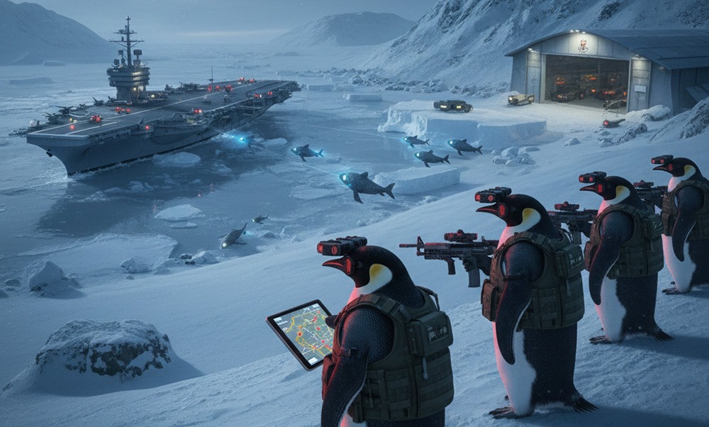 NUUK (dpoi): Die geopolitische Weltkarte gerät ins Wanken. Nachdem das Pentagon die „Operation Infinite Guacamole“ startete, um Venezuelas Ölreserven (und nebenbei die Demokratie) zu sichern, hat die autonome Regierung Grönlands mit einer beispiellosen militärischen Aufrüstung reagiert. Da man befürchtet, die USA könnten bald Appetit auf arktisches Eis und seltene Erden bekommen, wurde das Projekt „Frost-Force One“ ins Leben gerufen.