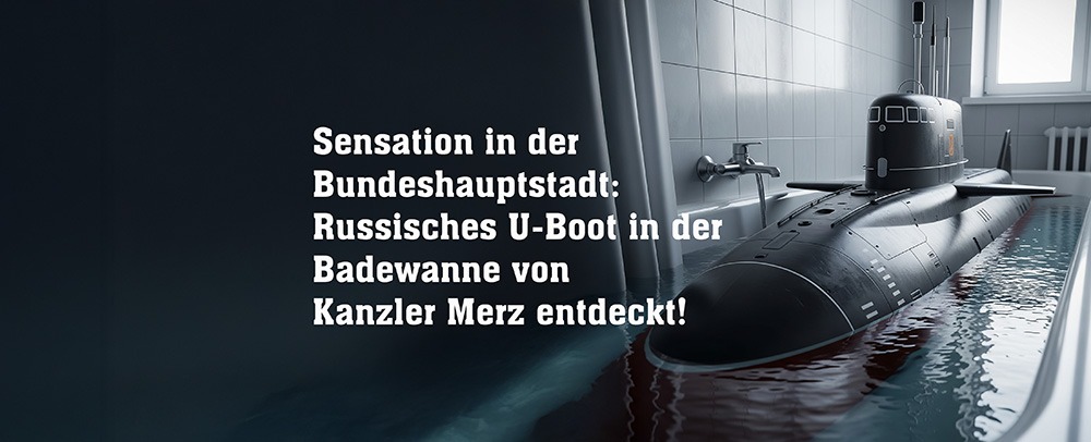 Berlin (dpoi) – Eine Welle der Fassungslosigkeit rollt durch die politische Landschaft Berlins. Im privaten Badezimmer des deutschen Bundeskanzlers Friedrich Merz ist am frühen Morgen ein russisches Atom-U-Boot aufgetaucht. Der Kanzler selbst machte die unfassbare Entdeckung, als er bei der täglichen Zahnreinigung nebenbei bemerkte, dass die Wanne plötzlich überlief. „Es war ein Schock“, so Merz in einer eilig einberufenen Pressekonferenz, „Ich dachte erst, die Wanne sei verstopft, aber dann sah ich das Periskop.“