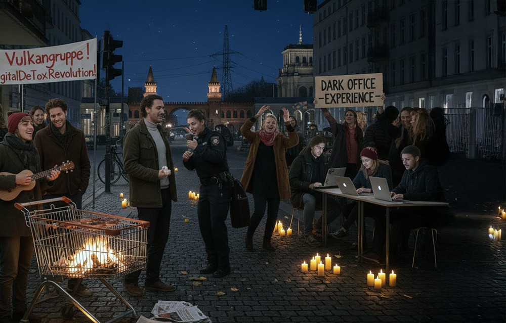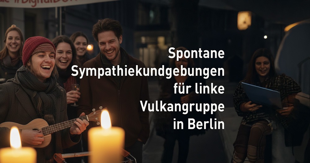 Berlin-Mitte (dpoi): Es sind Szenen, wie man sie sonst nur vom Mauerfall oder dem Gewinn der Weltmeisterschaft 2014 kennt: Wildfremde Menschen liegen sich in den Armen, Sektkorken knallen auf den Gehwegen, und aus den Fenstern der Berliner Altbauten dröhnt „The Final Countdown“. Der Grund für die kollektive Ekstase? Die linksextreme „Vulkangruppe“ hat wieder zugeschlagen und mit einer geschickten Sabotage am Stromnetz halb Brandenburg und Berlin-Südost lahmgelegt.