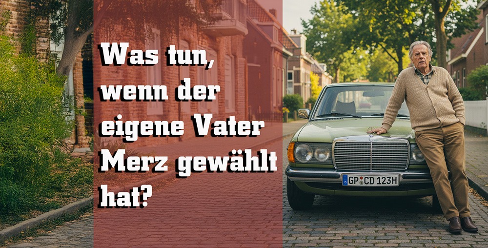 Es beginnt meist harmlos. Ein Kommentar zum „soliden Kurs des Kanzlers“, ein beiläufiges Lob für „die Frau Merkel“ (denn wahre CDU-Liebe rostet nicht) oder ein Stirnrunzeln beim Stichwort „Soziale Gerechtigkeit“. Doch irgendwann ist es nicht mehr zu leugnen: Ihr eigener Vater, der Mann, der Ihnen das Radfahren beibrachte und erklärte, wie eine Steuererklärung funktioniert, ist ein Merz-Wähler.