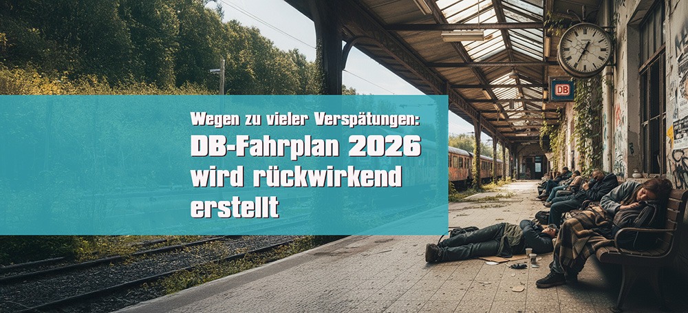 Berlin (dpoi) – Die Deutsche Bahn hat heute eine „grundlegende Innovation“ im Fahrgastservice angekündigt: Der Fahrplan für das Jahr 2026 wird nicht wie gewohnt im Voraus veröffentlicht, sondern erst nach Ablauf des Jahres, also rückwirkend.